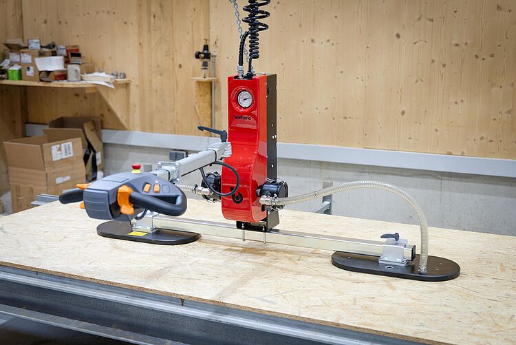 Vakuumheber UWL 1 in Verbindung mit einem Wandschwenkkran mit 10 m Auslegerlänge
