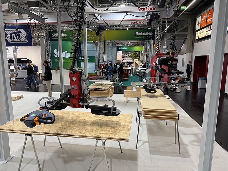 Neben der Automatisierung war auch der Bereich manuelles Handling stark nachgefragt – insbesondere Lösungen rund um Vakuumhandling für Holz und Glas sowie Akkugeräte für den mobilen Einsatz. Hier konnten Besucher unsere gängigsten Produkte hautnah erleben, ausprobieren und direkt testen. Gerade bei manuellen Hebeaufgaben sind Haptik, Bediengefühl und Ergonomie entscheidend – und genau das lässt sich am besten vor Ort vermitteln. Viele Gespräche drehten sich dabei um sichere, materialschonende Handhabung, ergonomische Arbeitsplätze und darum, wie sich einzelne Handlingschritte im Prozess spürbar vereinfachen lassen.